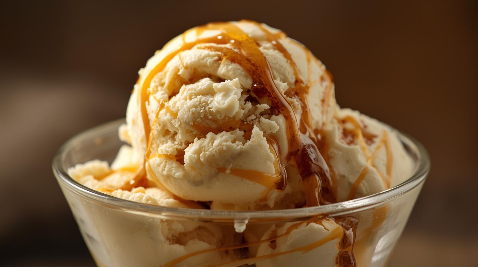Creamy and indulgent Vanilla & Toffee Honey Pot Ice Cream, with rich vanilla flavor and swirls of toffee honey.